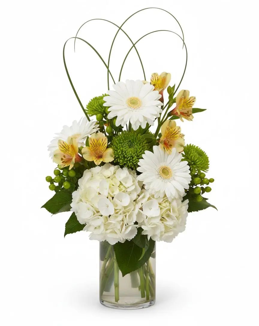 Bring the serene beauty of the countryside into your home with this enchanting bouquet. Featuring a delightful mix of Hydrangea, Gerbera, Hypericum, and more, it's a vibrant celebration of nature's finest. Let these fresh cut blooms add a touch of joy and tranquility to any space.